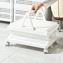 पहियों के साथ फोल्डेबल प्लास्टिक भंडारण टोकरी आधुनिक चल घर भंडारण बॉक्स हैंडहेल्ड मल्टीफंक्शन स्टोरेज बिन